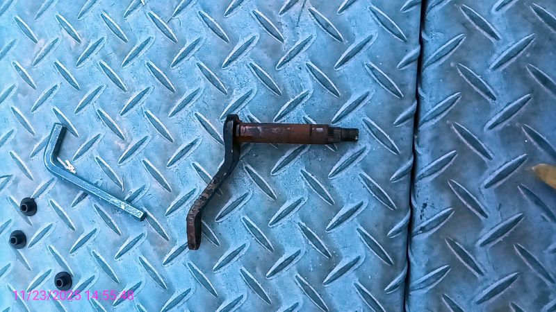 側車側ブレーキロッドとのリンクを外す為コッタピンを抜き、ピンとワッシャー、金具を回収。