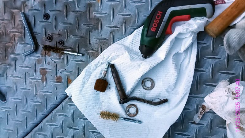 前回同様、パーツクリーナーで清掃し、Φ13oの真鍮ブラシで一気に作業。軸の方は画像研磨軸のを当ててさび落とし。ピカールで仕上げてグリスアップ 今はワコーズハイマルチグリース使っている